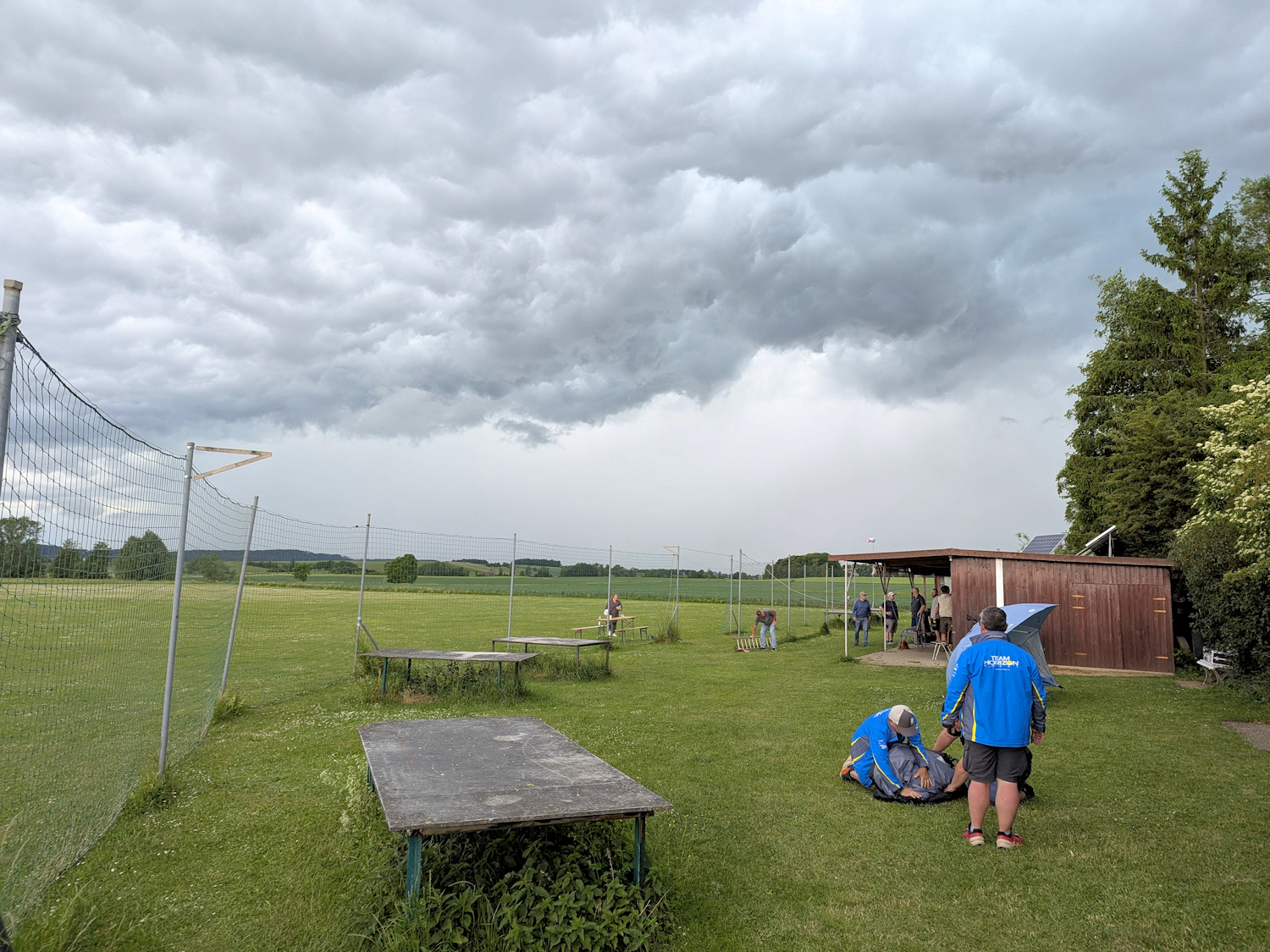 Das Wichtigste zuerst, der F5L Wettbewerb konnte trotz angesagter Gewitter sauber über die Bühne gebracht werden! Die Bedingungen waren insgesamt um einiges selektiver als noch am Vortag. Aus diesem Grund gestalteten sich die Punktabstände deutlich klarer, was der Spannung insgesamt aber zuträglich war und sich natürlich bis zum abschließenden FlyOff fortsetzte. Die zweite FlyOff-Runde hatte es in sich, da eine Schlechtwetterfront aufzog und insbesondere der Wind ordentlich auffrischte! Schön, dass neben den bekannten D-Tour-Piloten Monique und Loet aus den Niederlanden auch einige Freunde aus der Türkei und aus Österreich am Start waren! Herzlichen Glückwunsch an den Gewinner und an die Bestplatzierten!